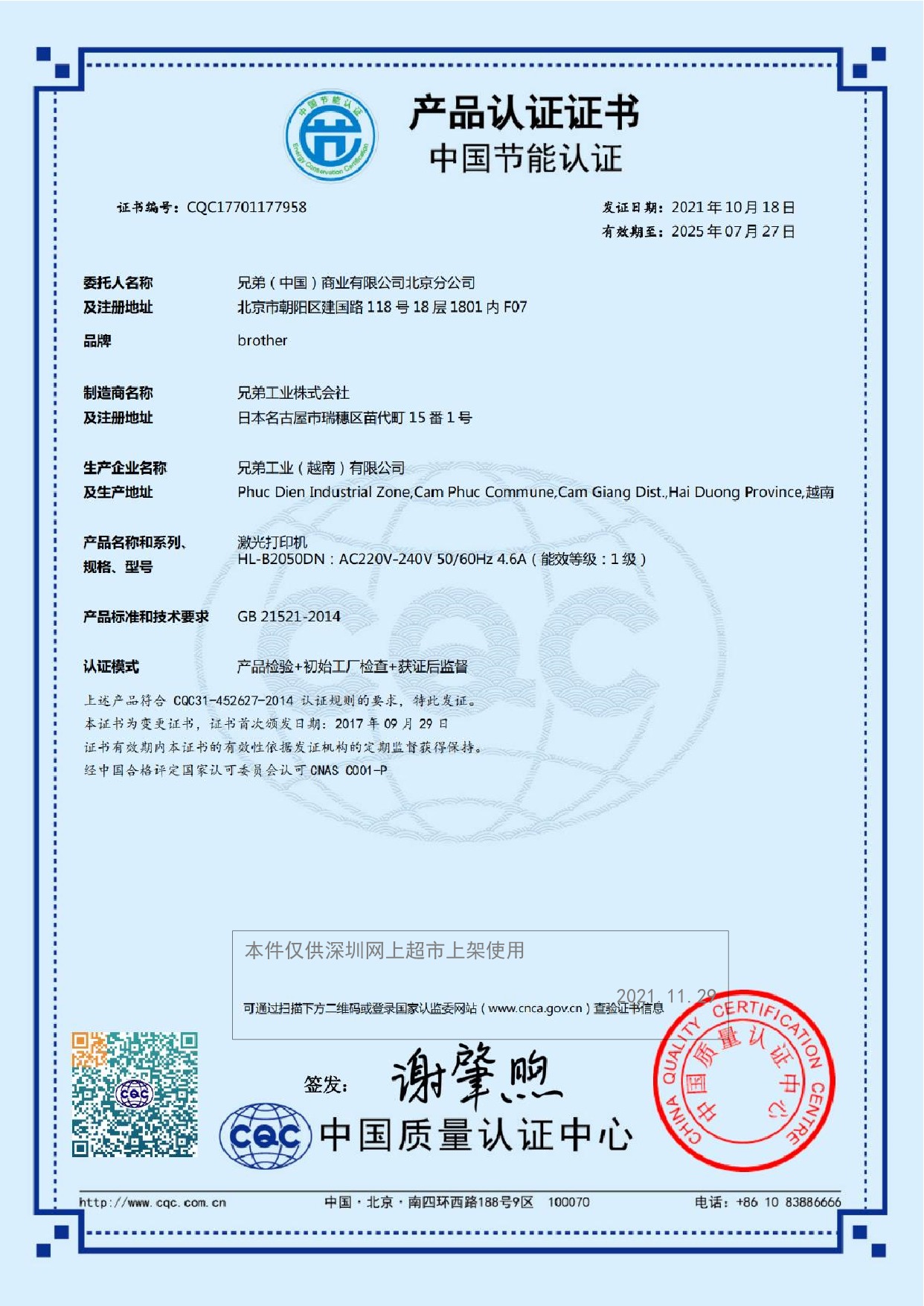 认证型号