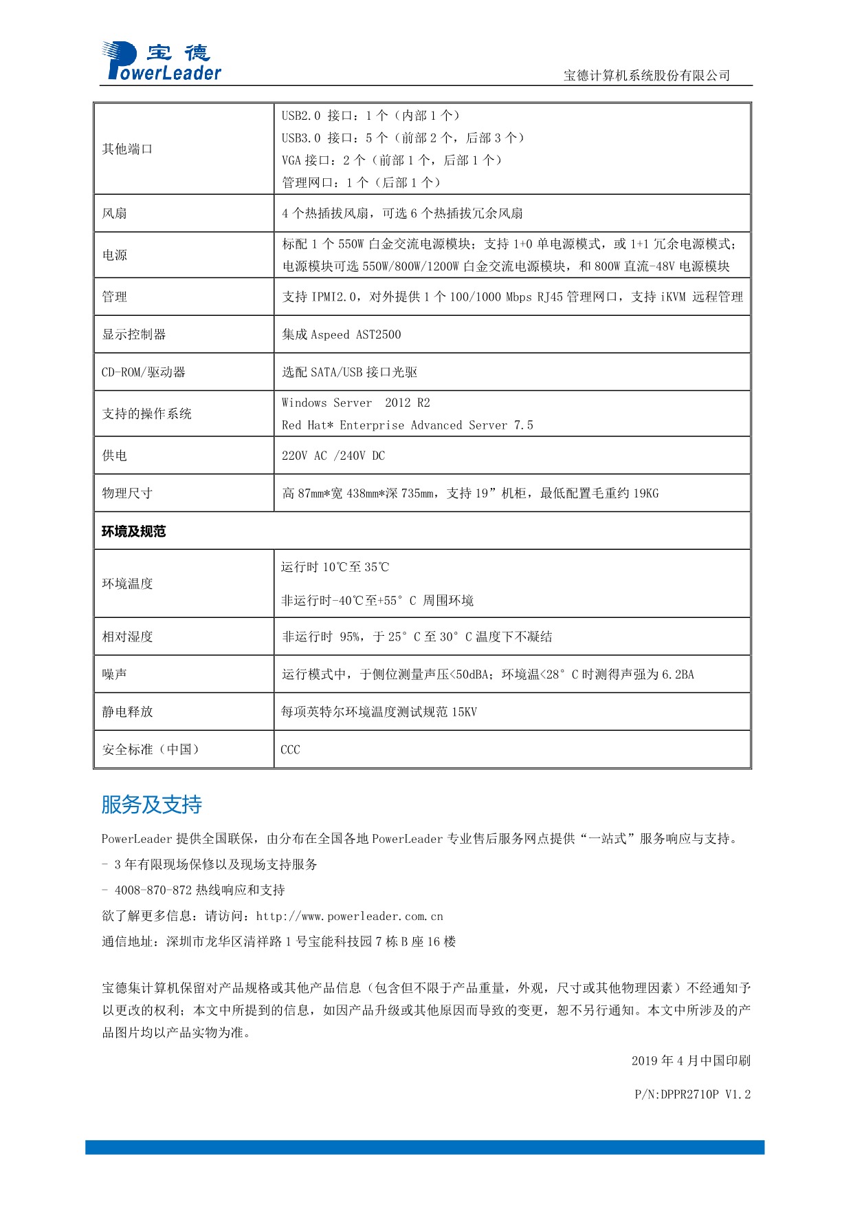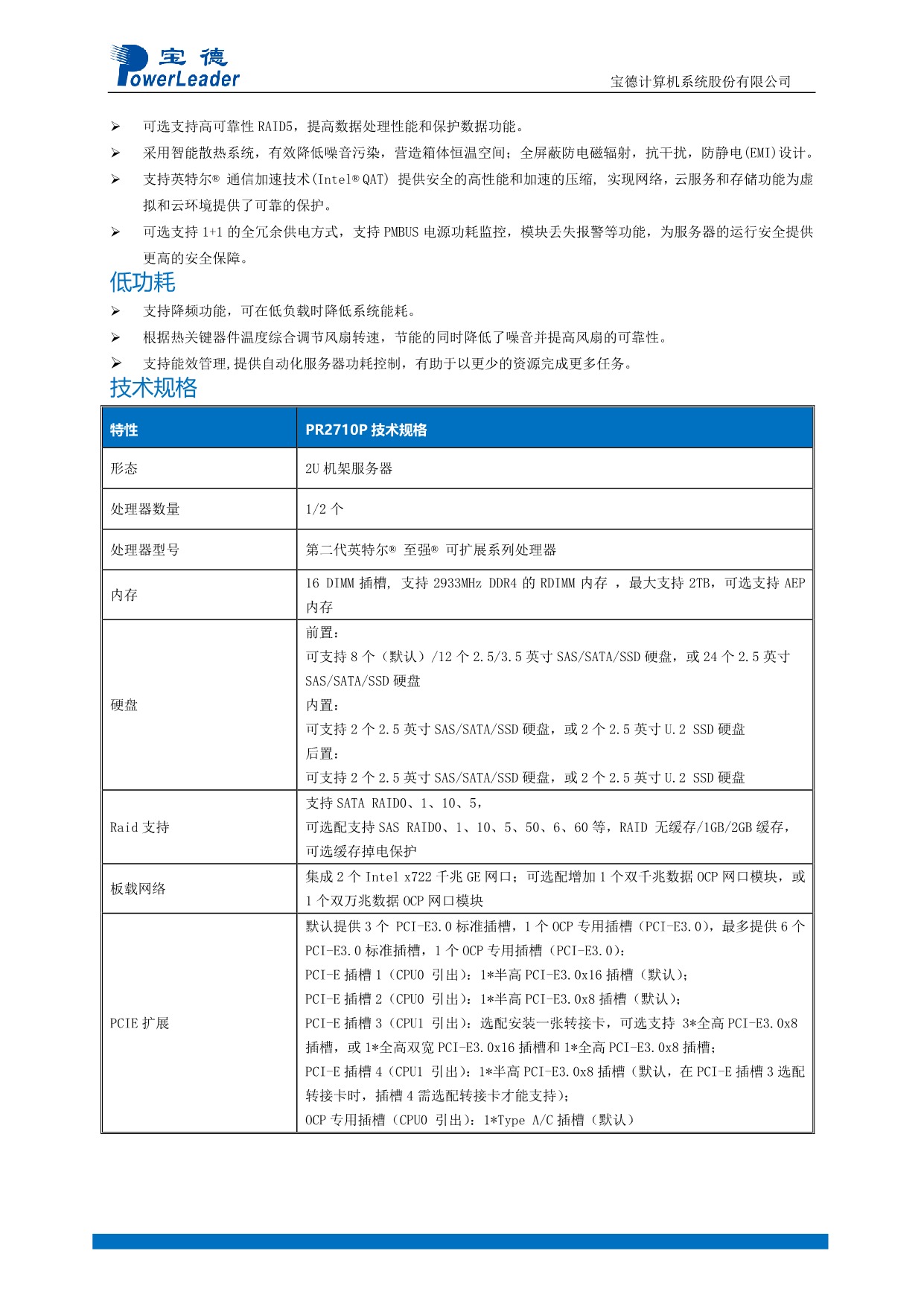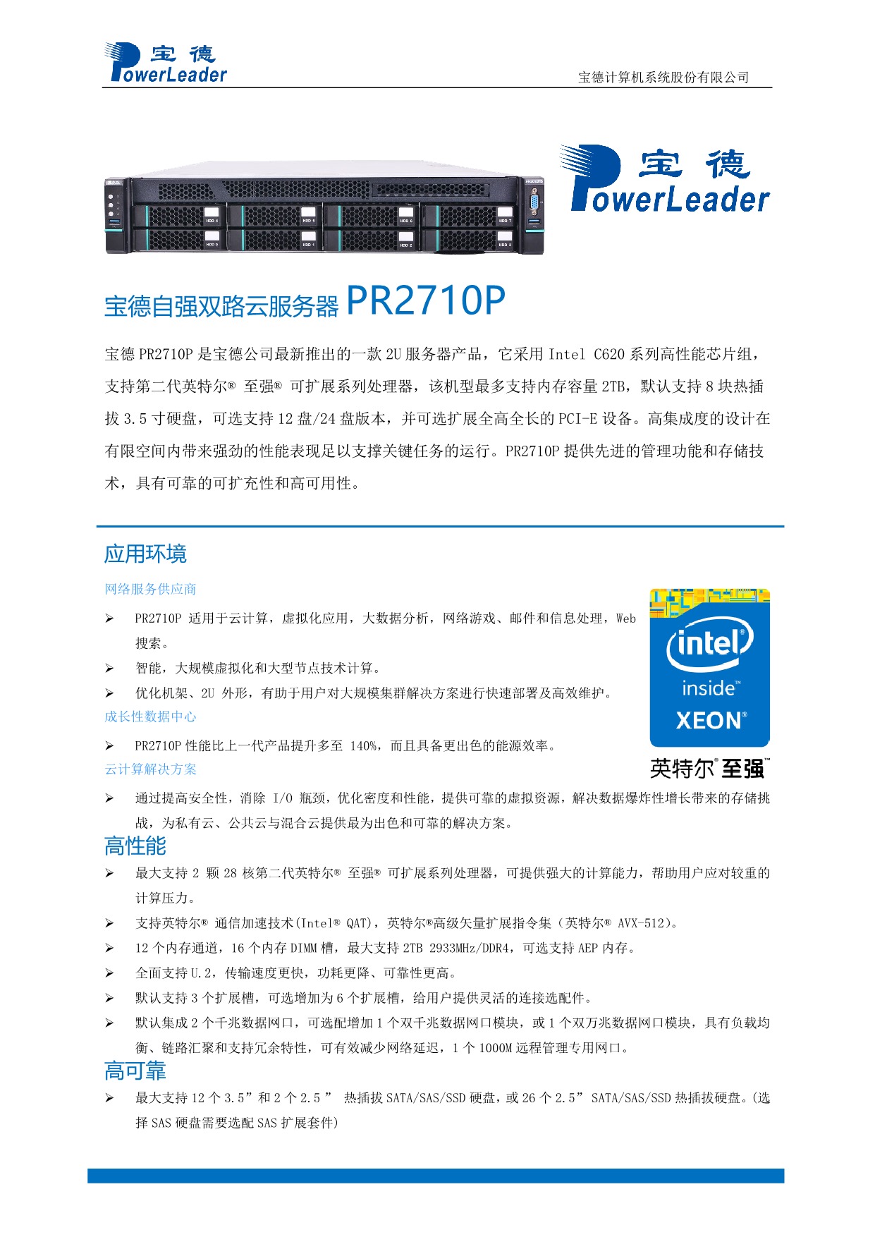 商品名称:宝德PR2710P架服务器IntelXeonBronze3204Processor/16G/480G*3/8口/PCIe3.0x8/模块化平台导轨半展/3年