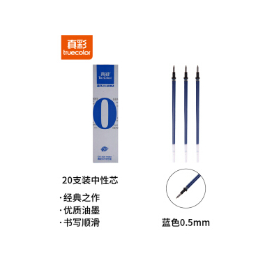 商品名称:真彩GR-009中性笔芯0.5mm蓝色 20支/盒