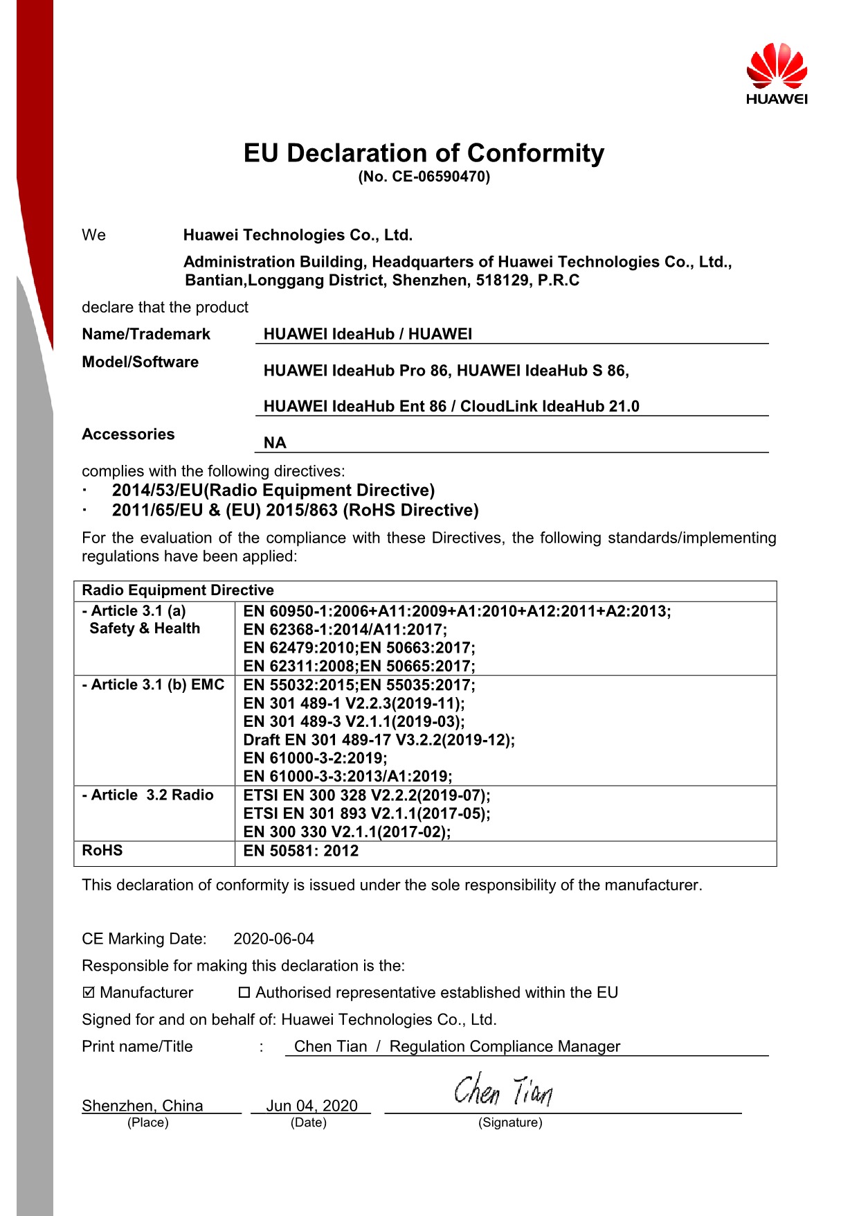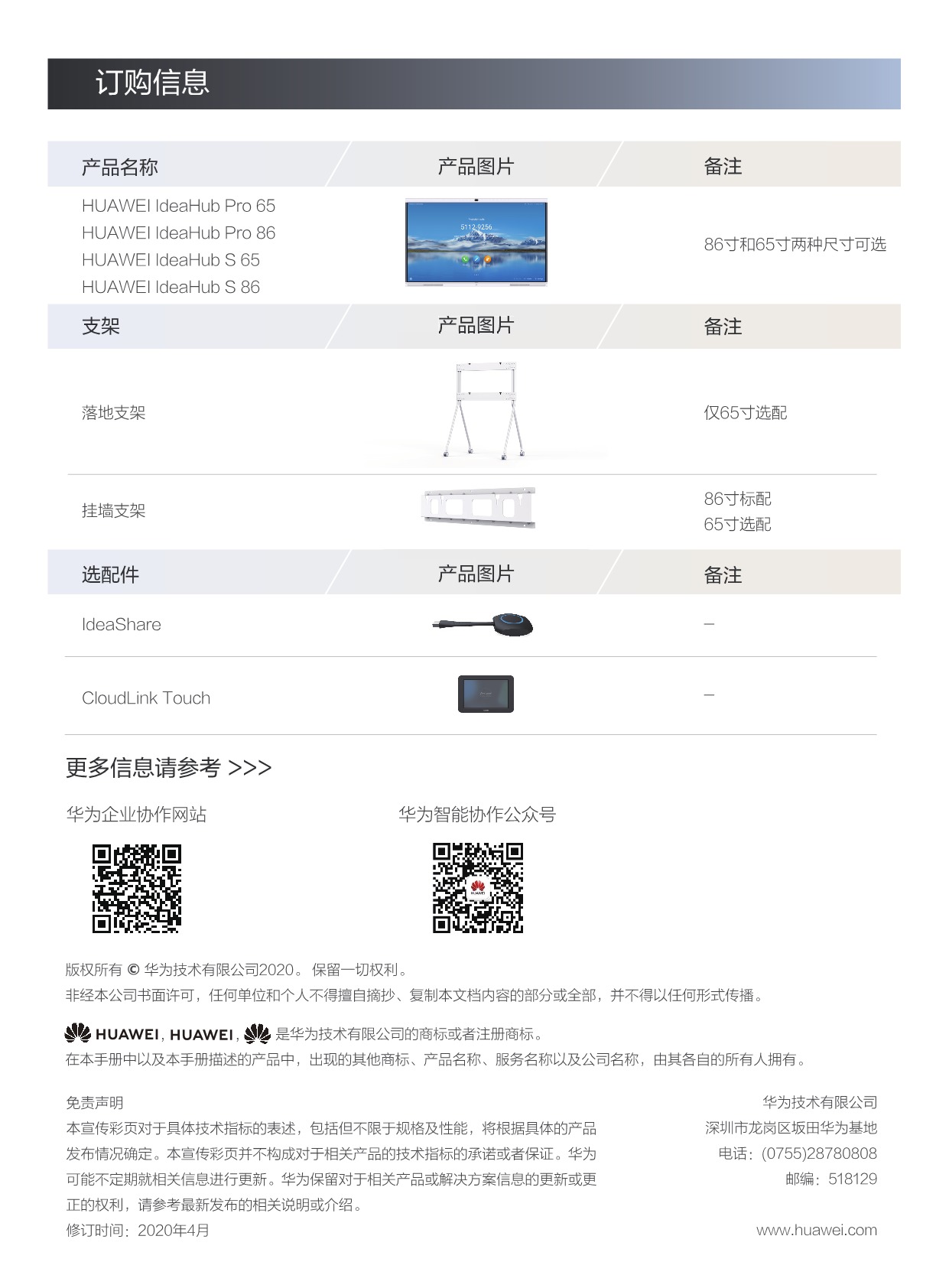 商品名称:华为(HUAWEI)IdeaHub S 86英寸企业智慧屏电子白板(会议平板/视频会议/无线投屏/智能语音/海量APP应用/会议平台解决方案)配挂墙支架