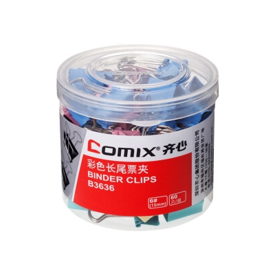 商品名称:齐心彩色长尾夹 B3636 15mm 60只筒