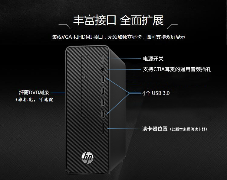 商品名称:惠普台式电脑 惠普(HP)台式计算机 型号 280 G5 SFF 台式电脑(i3-10100/8G/1TB+256GSSD/无光驱/Win10H/USB键鼠标/180W电源/3年保修/21.5液晶显示器)
