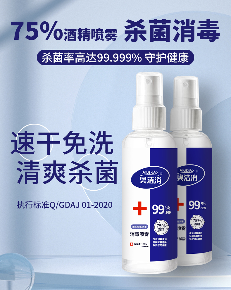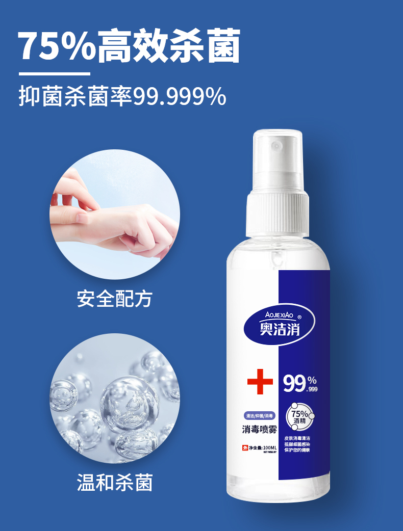 商品名称:消毒液喷雾酒精 奥洁消消毒喷雾100ml(1瓶装)