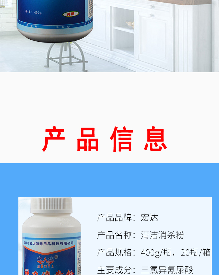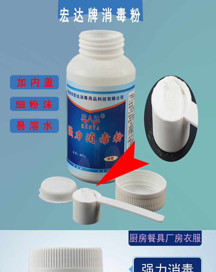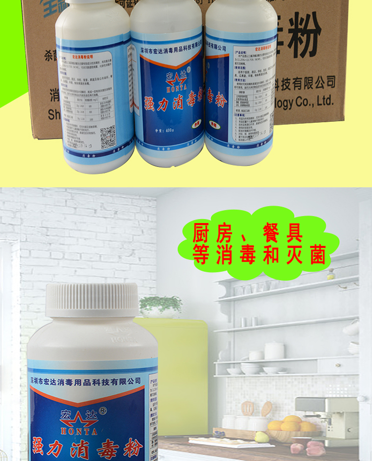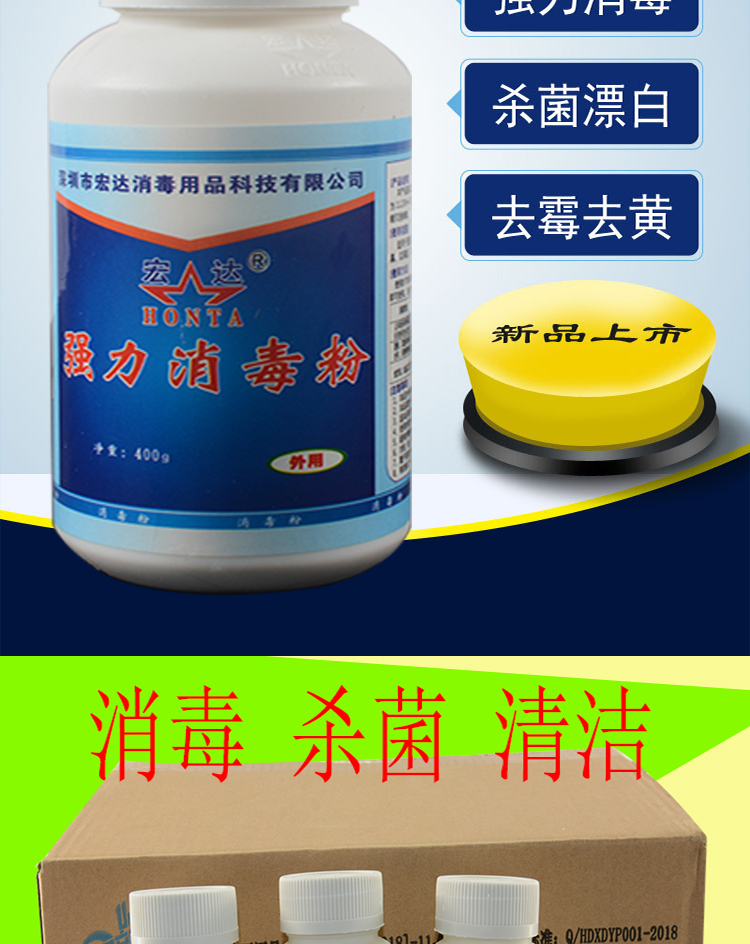 商品名称:宏达消毒粉 学校幼儿园消毒剂 400g/瓶 20瓶/箱