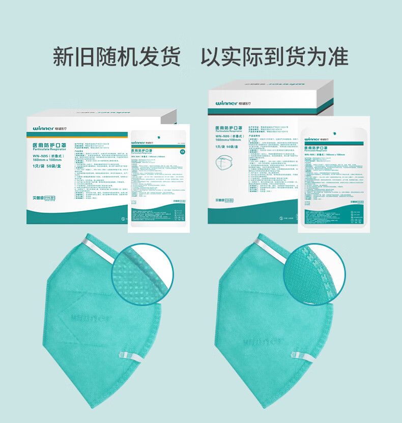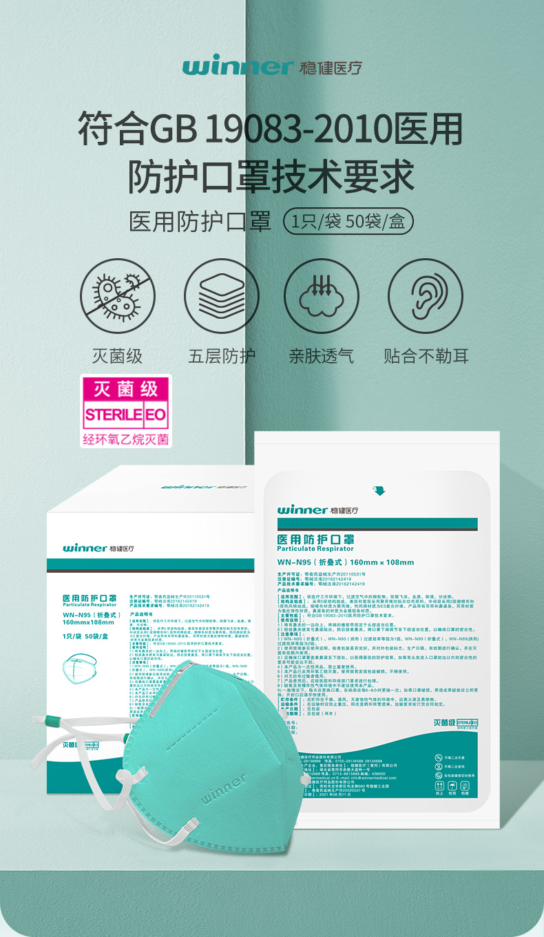 商品名称:稳健医用N95口罩 灭菌级3D立体口罩头戴式独立包装 50袋/盒