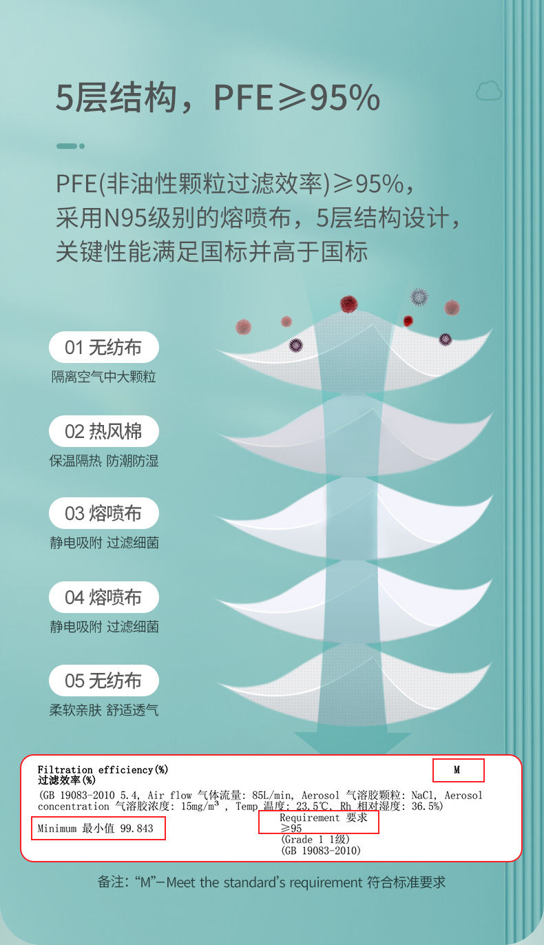 采用无纺布原料和N95过滤布(夹层)热合而成