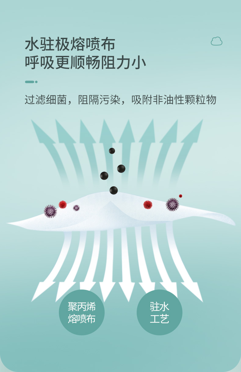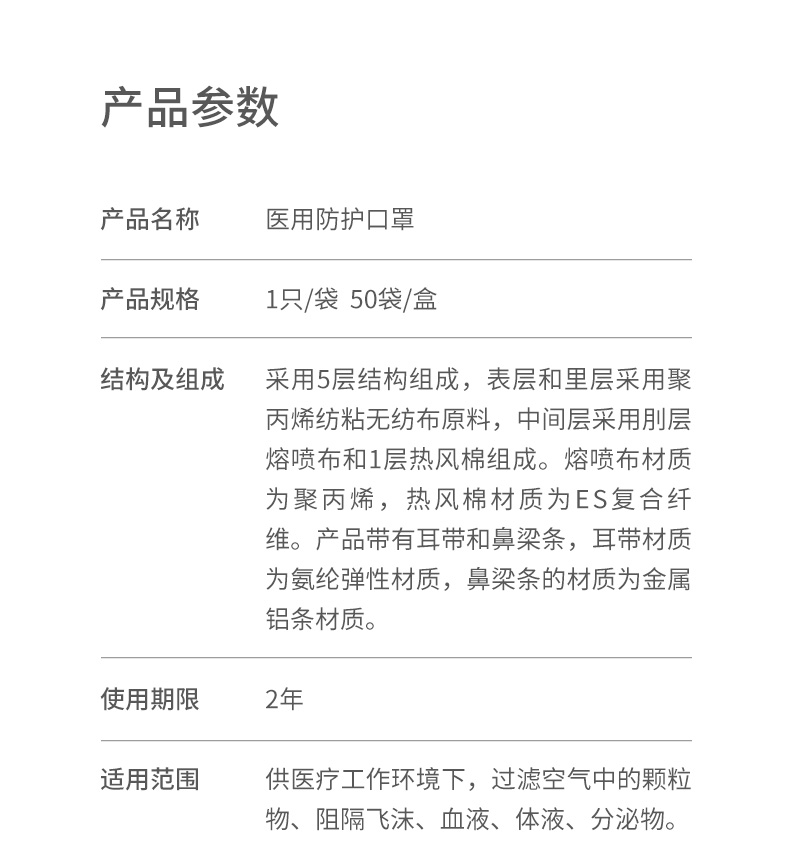 供医疗工作环境下,过滤空气中的颗粒物、阻隔飞沫、血液等