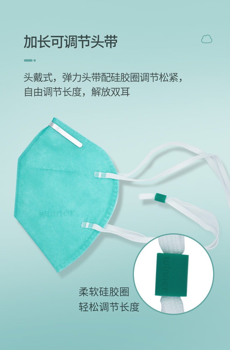 将有鼻夹的一边向上,两端的橡筋带固定于头部适当位置