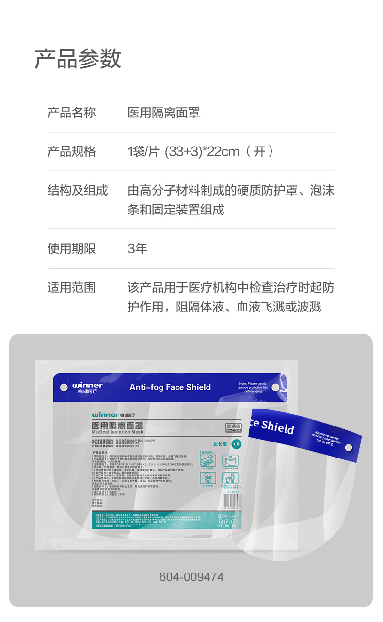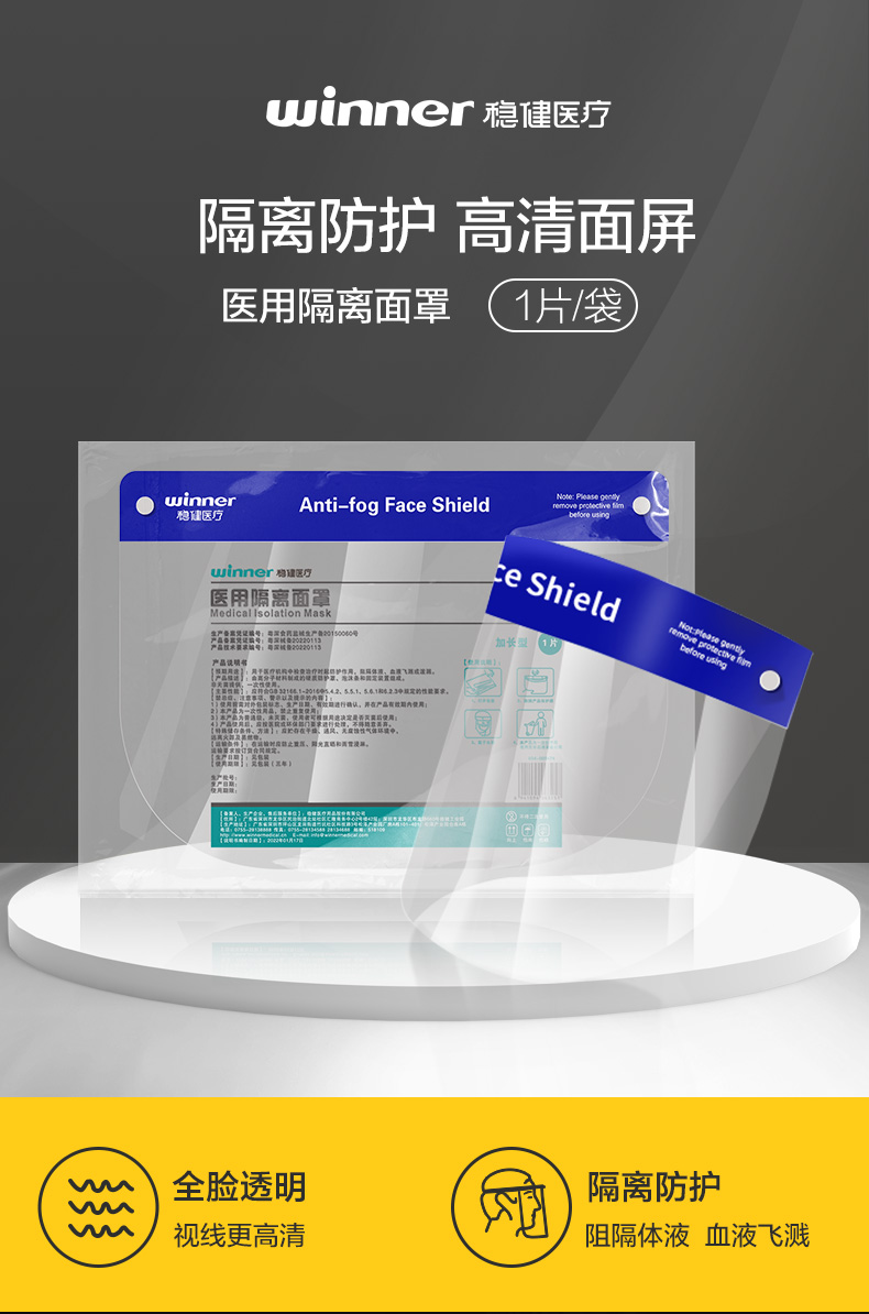 商品名称:稳健 一次性使用医用隔离面罩 医用隔离面罩*1个