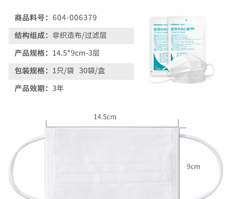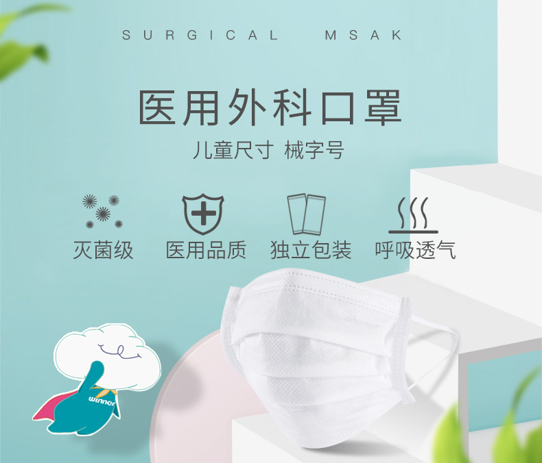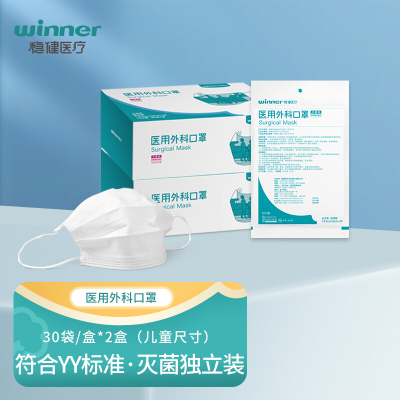 商品名称:稳健 一次性医用口罩外科儿童 独立包装 30袋/盒