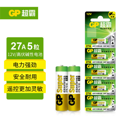商品名称:超霸(GP)27A12V高伏碱性电池 5粒/排