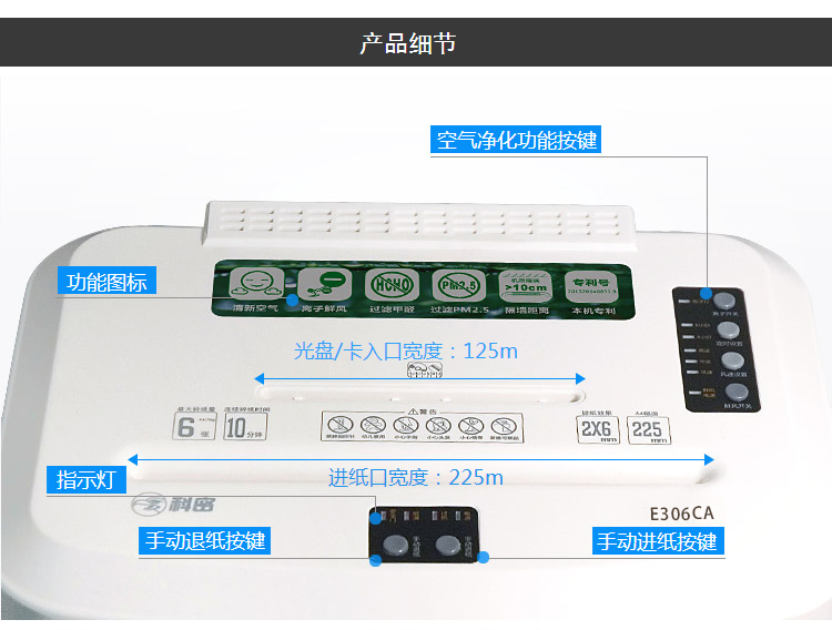 商品名称:科密E306CA碎纸机