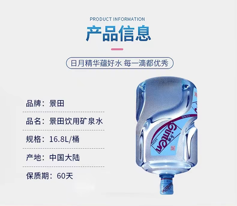 商品名称:景田天然泉水16.8L桶装水 1桶