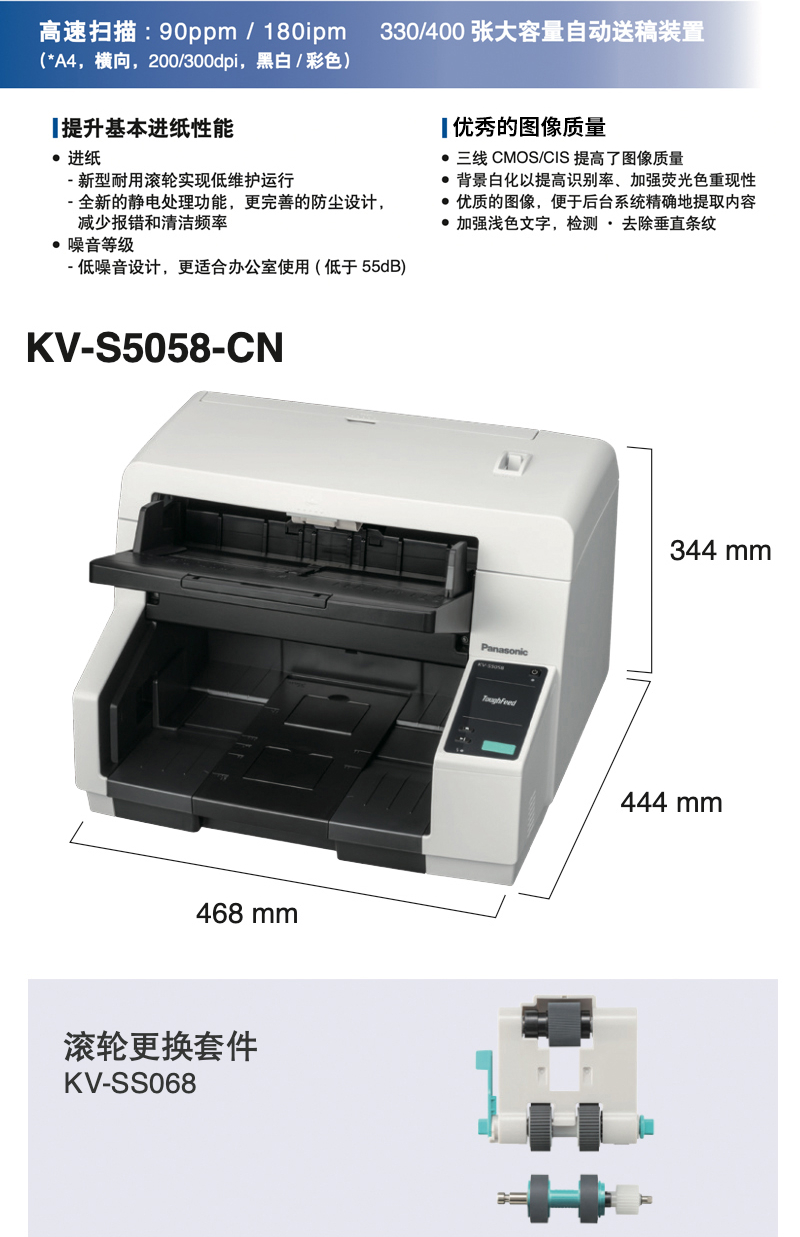 商品名称:松下(Panasonic) KV-S5058-CN A3高速双面自动馈纸扫描仪 90ppm/180ipm 3线彩色CMOS/CIS 不含软件