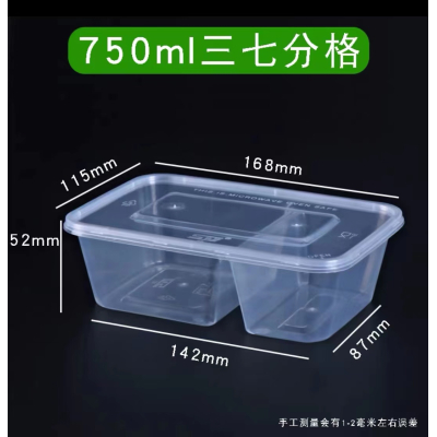 商品名称:一次性饭盒三七分格快餐盒 透明两格750ml(300套/箱)