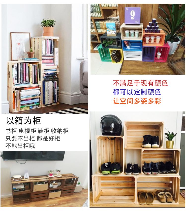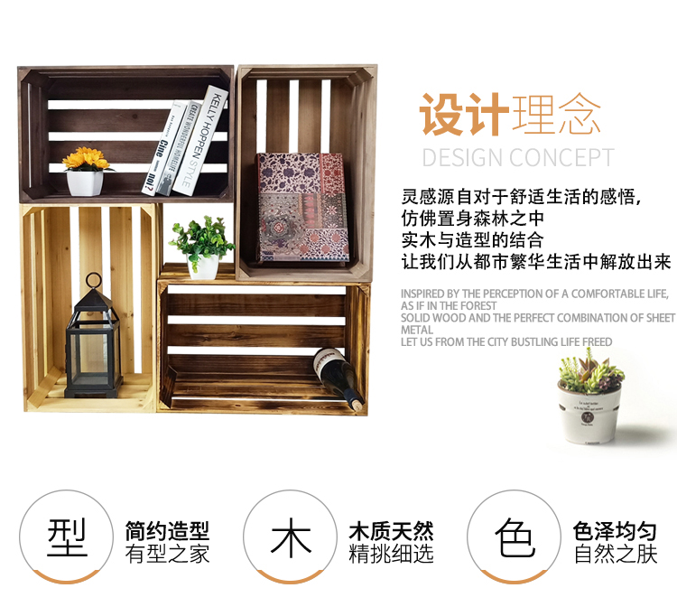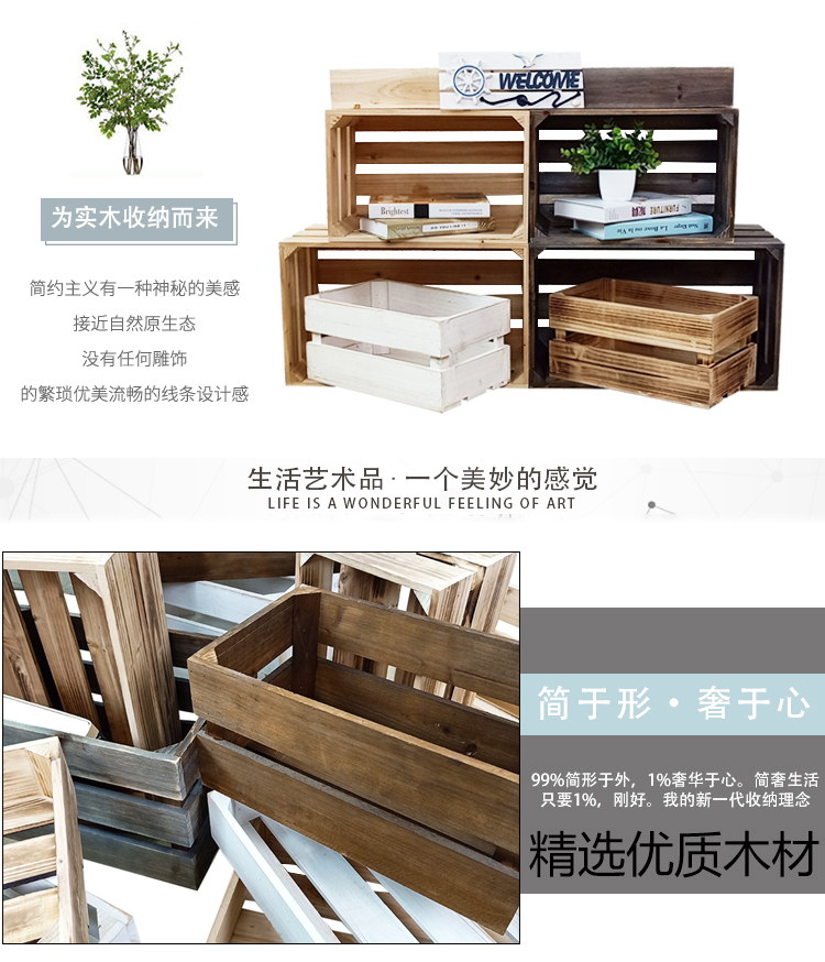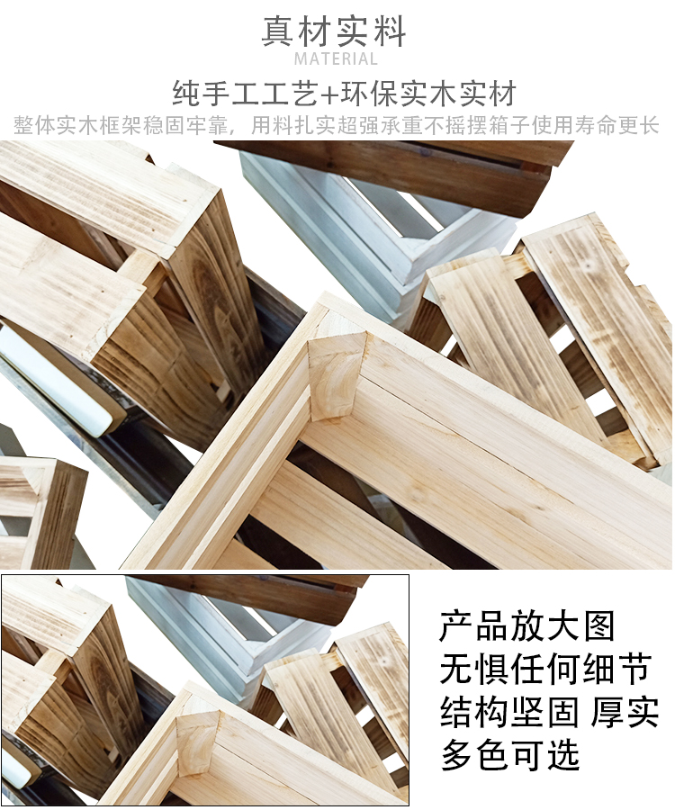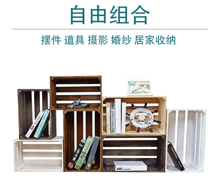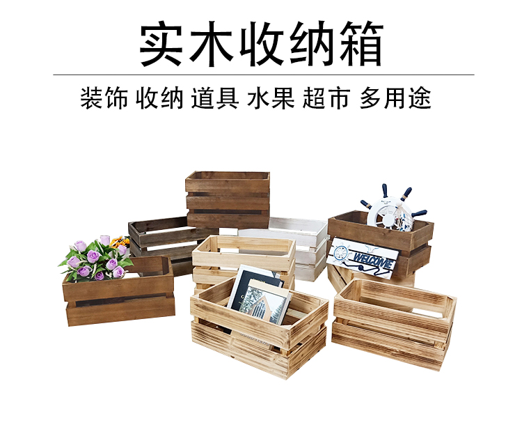 商品名称:木箱子储物箱定制复古实木收纳箱 旧木色 三层长34*宽23*高21cm(定制品)