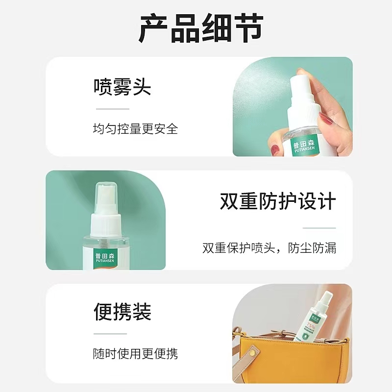 商品名称:普田森75%酒精喷雾500ml*2瓶+100ml*1瓶 免洗消毒液杀菌喷剂
