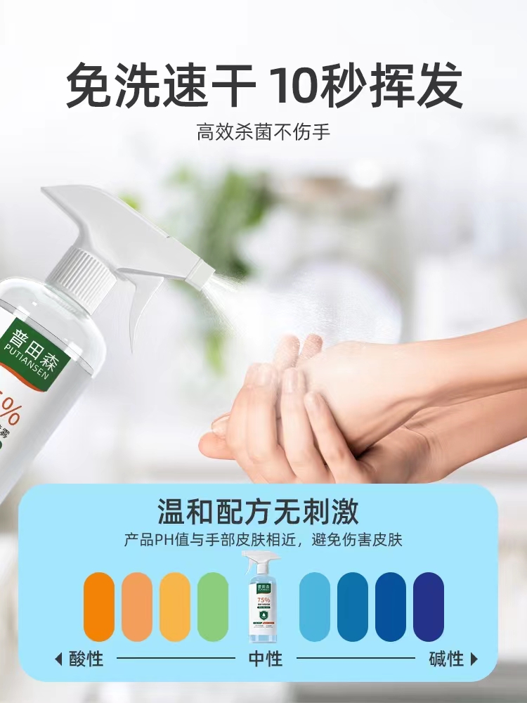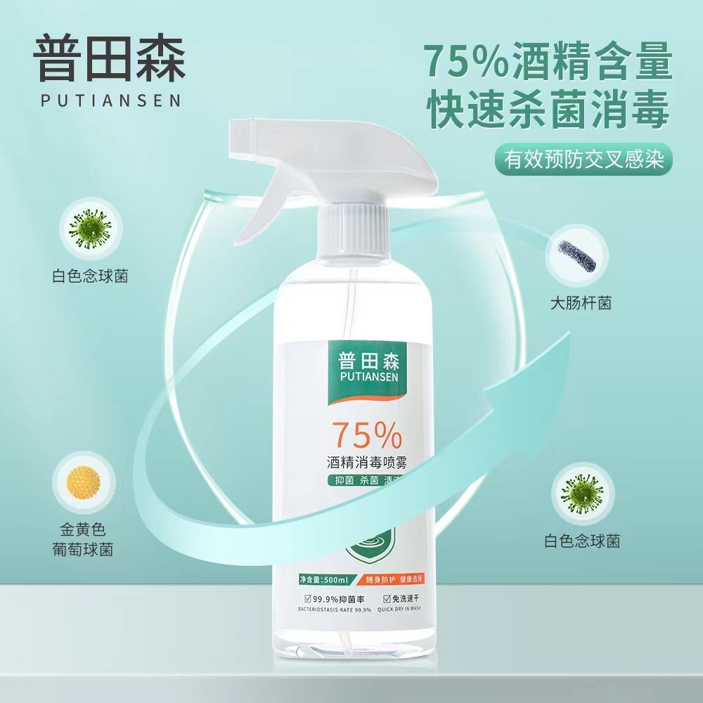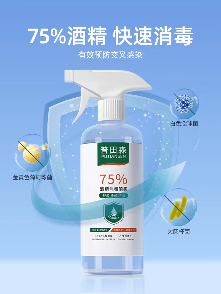 商品名称:75度酒精喷雾消毒液免洗手液 75%酒精500ml【1瓶】