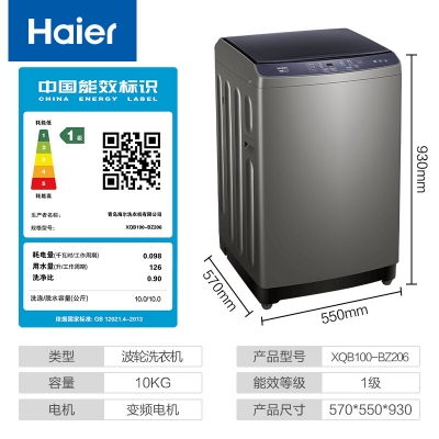 商品名称:海尔(Haier)10KG全自动波轮洗衣机家用大容量直驱变频一级能效智能预约称重编程 除螨洗XQB100-BZ206