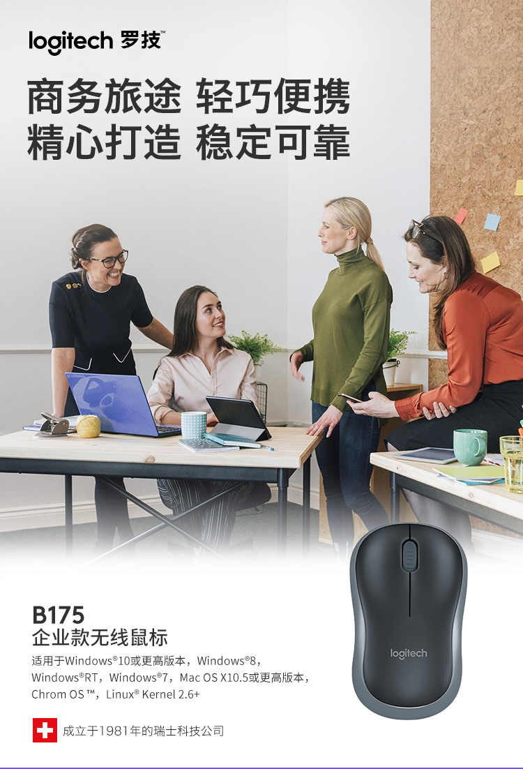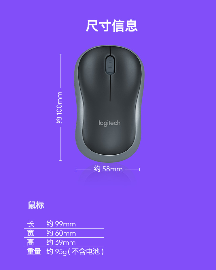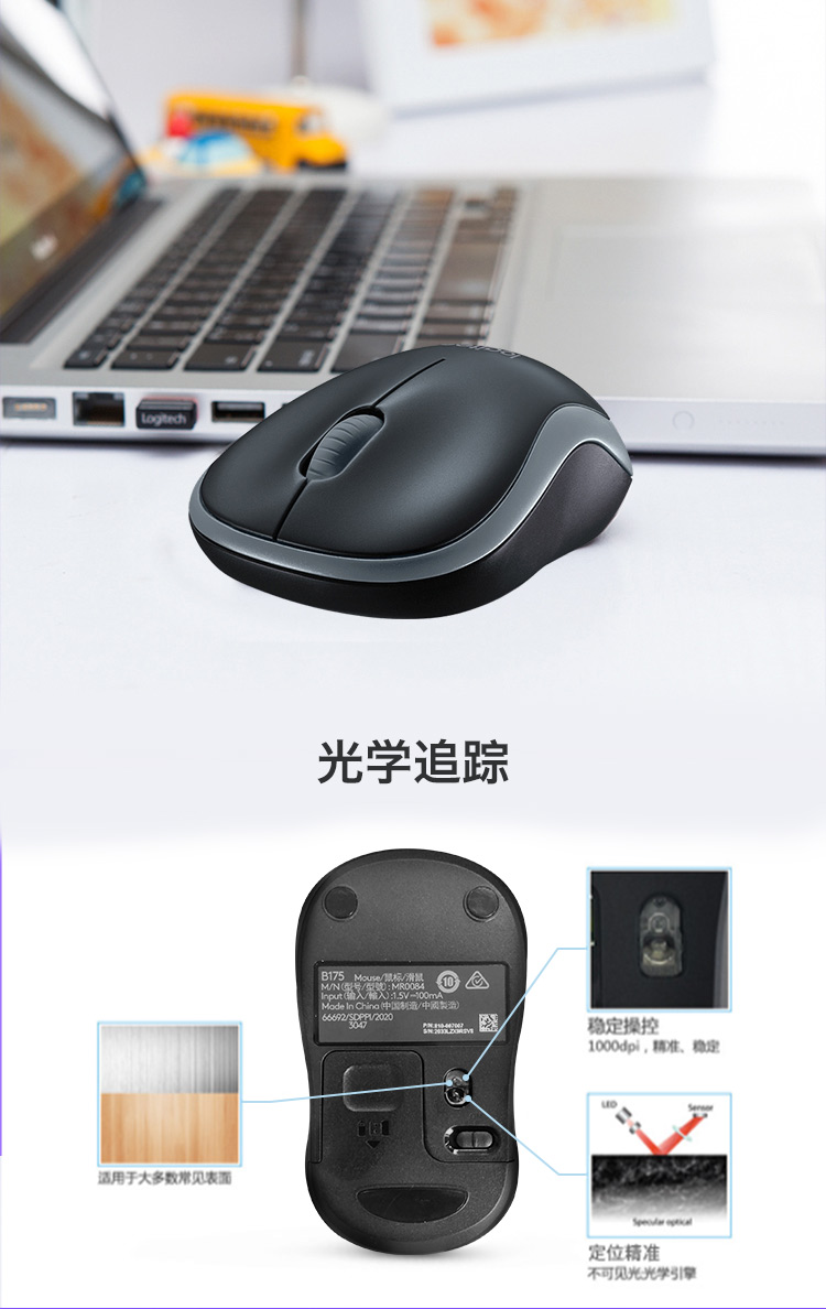 商品名称:罗技(Logitech)B175 企业版 鼠标 无线鼠标 办公鼠标 对称鼠标 带无线2.4G接收器(计价单位:个)黑色