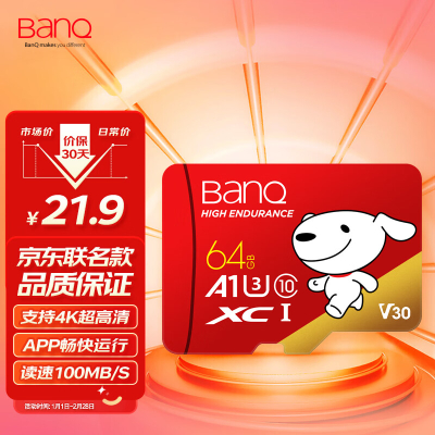 商品名称:banq&京东JOY联名款 64GB TF(MicroSD)存储卡U3 C10 A1 V30 4K高速款 行车记录仪&监控内存卡