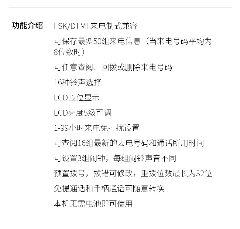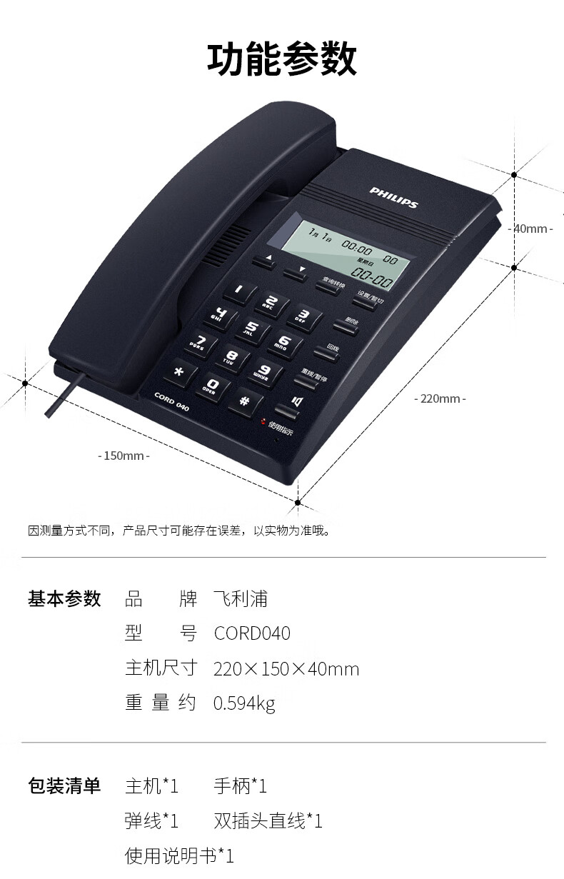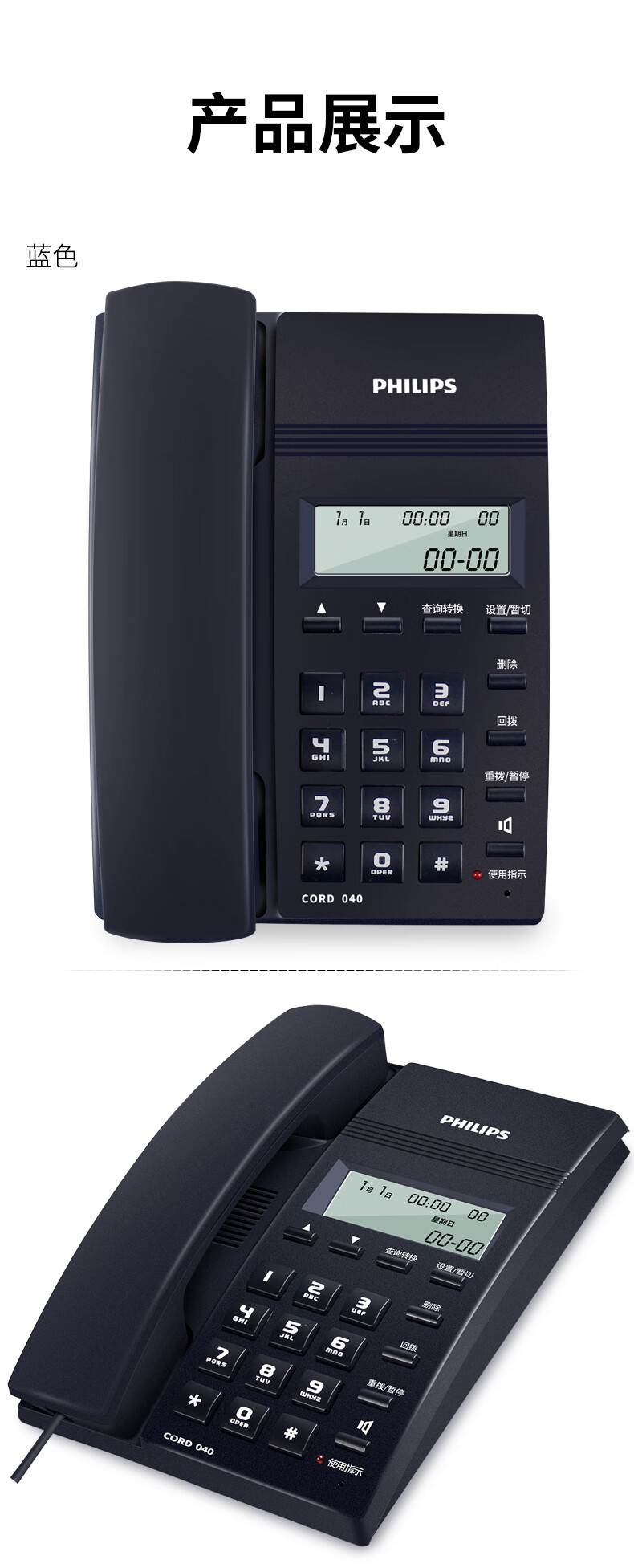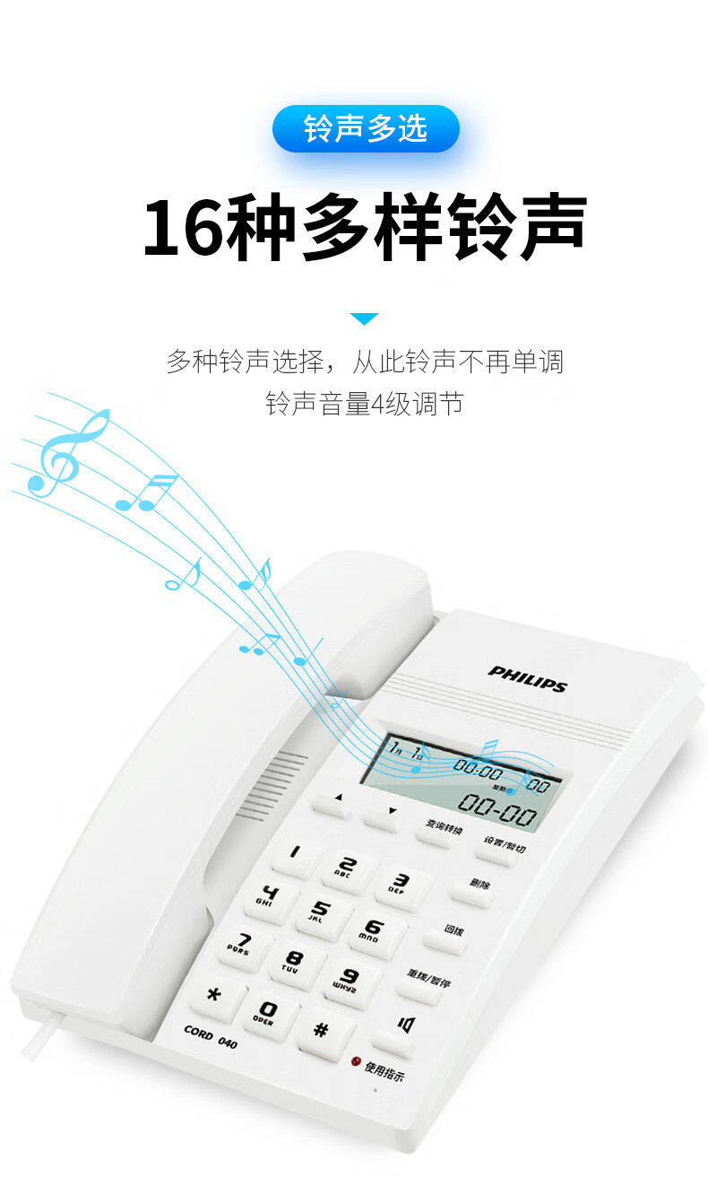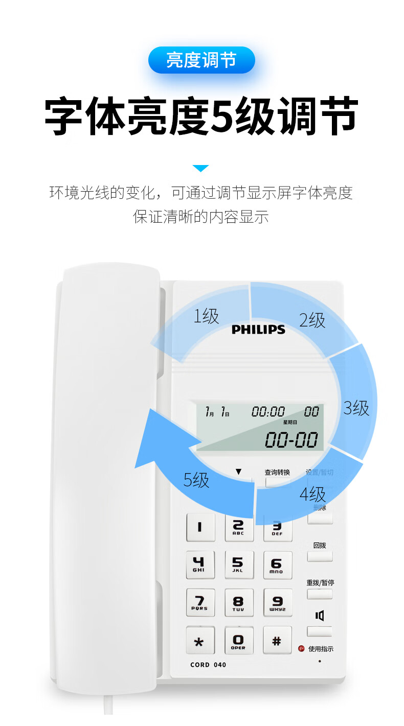 商品名称:飞利浦电话机座机 免提通话 免电池 CORD040白色