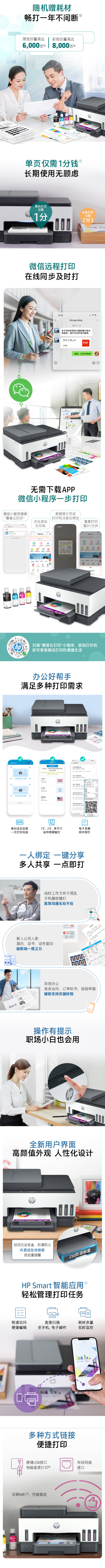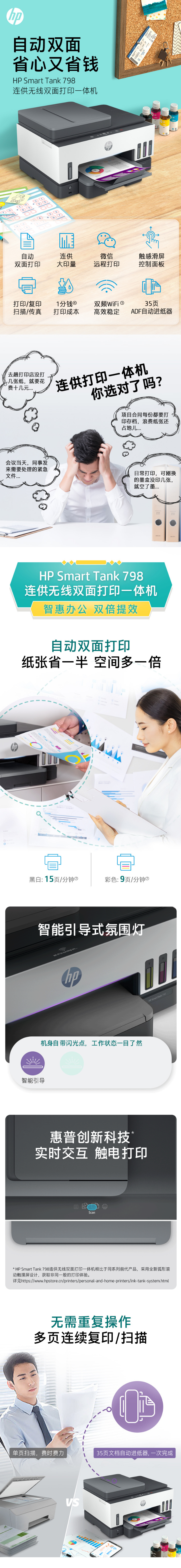 商品名称:惠普(hp)Smart Tank 798 A4彩色喷墨墨仓式连供一体机 (双面打印/复印/扫描/手机无线连接)