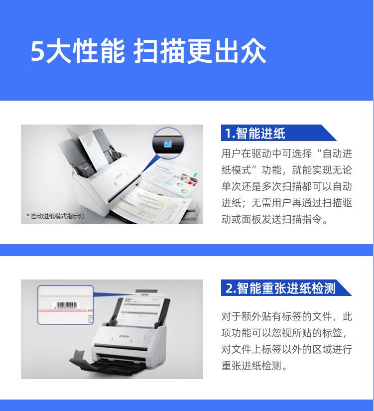 商品名称:爱普生(EPSON) A4彩色文档馈纸式自动连续双面高速扫描仪 DS-530II(保修2年包安装)