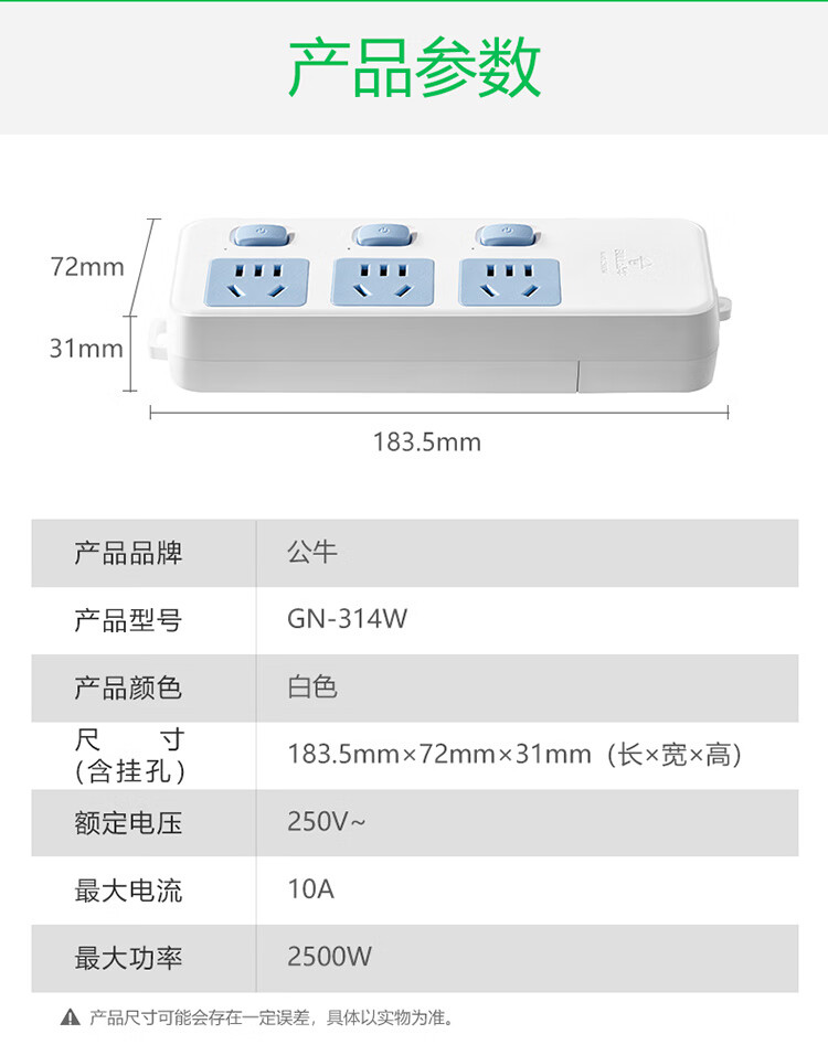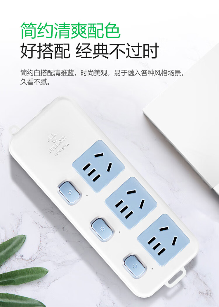 商品名称:公牛(BULL)插座 3位 分控 五米 GN-314