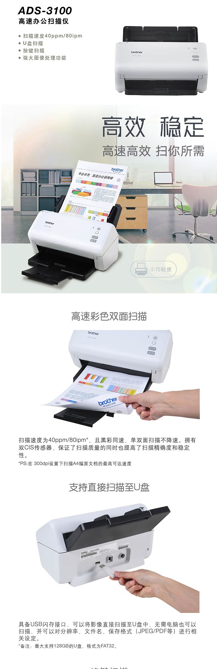 商品名称:兄弟(brother)ADS-3100 扫描仪
