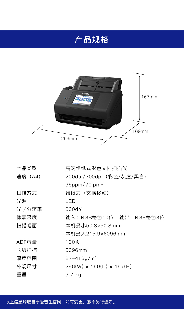 商品名称:爱普生扫描仪 爱普生扫描仪ES-580W
