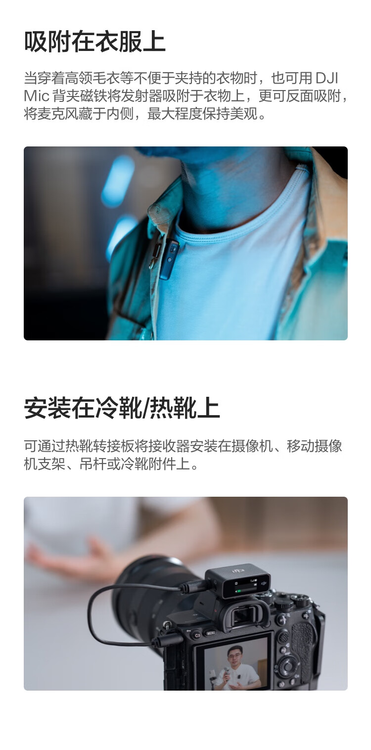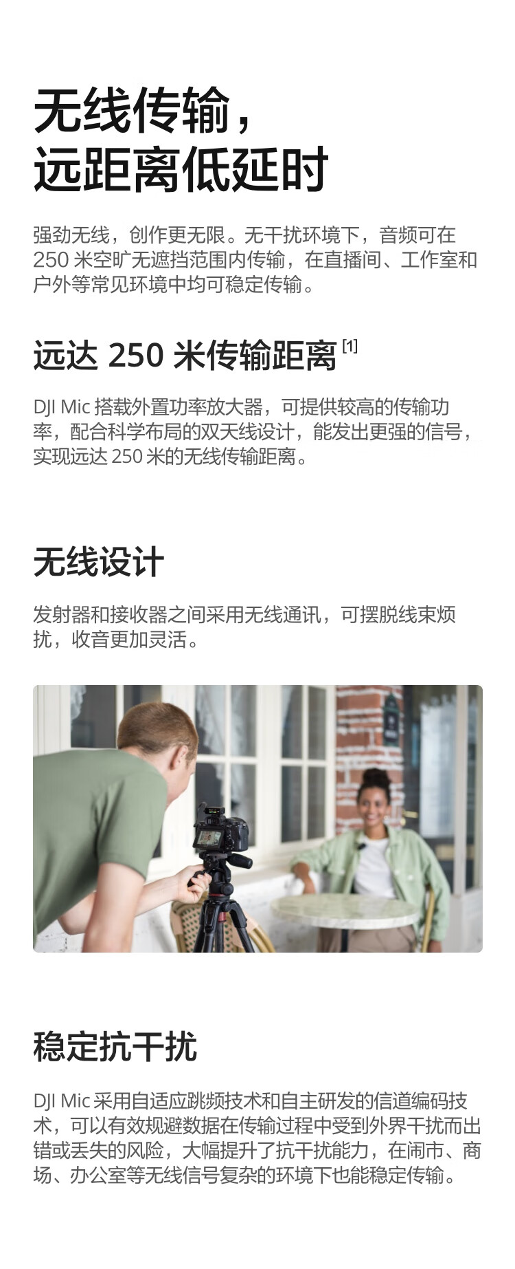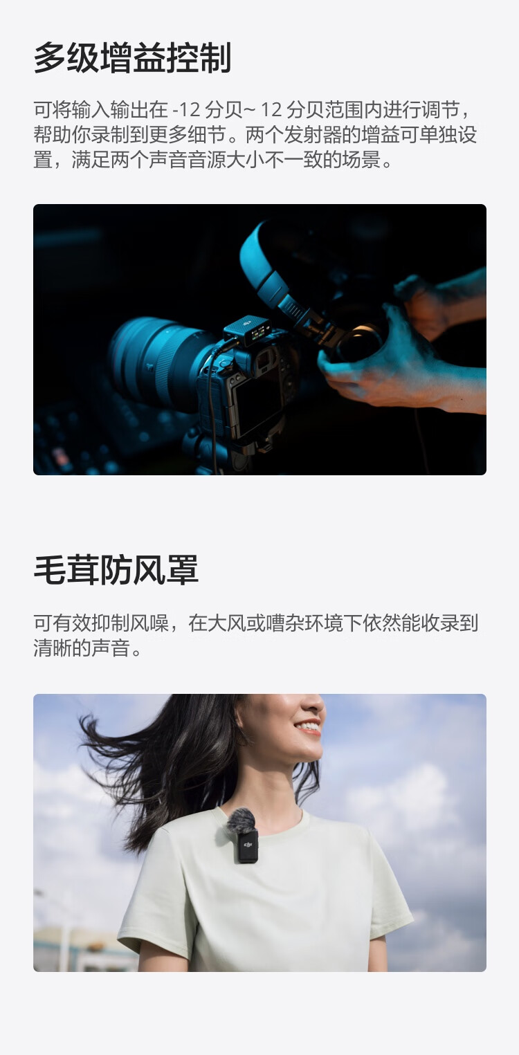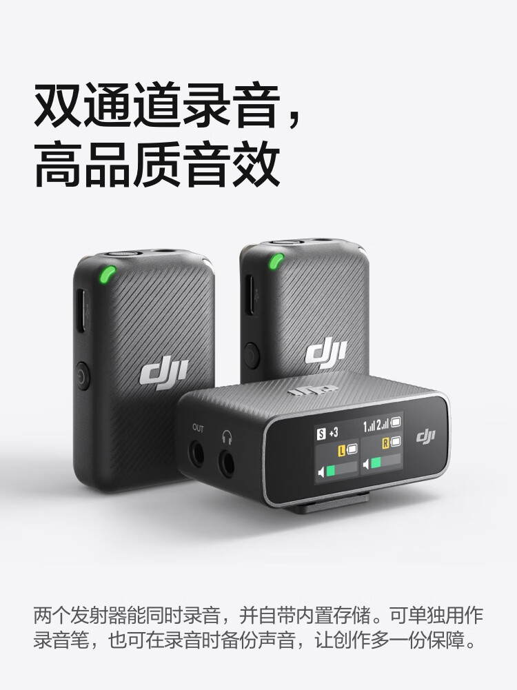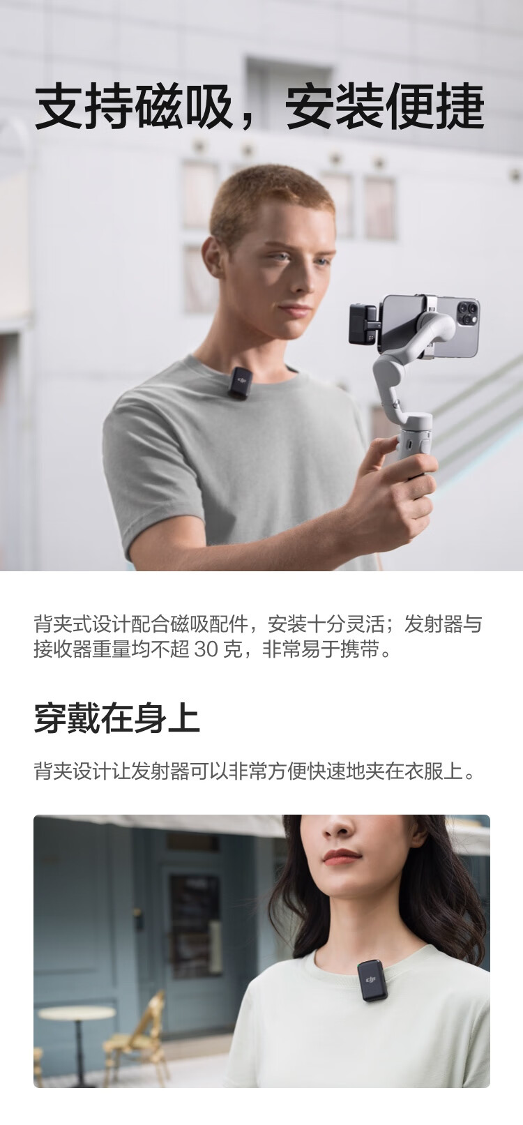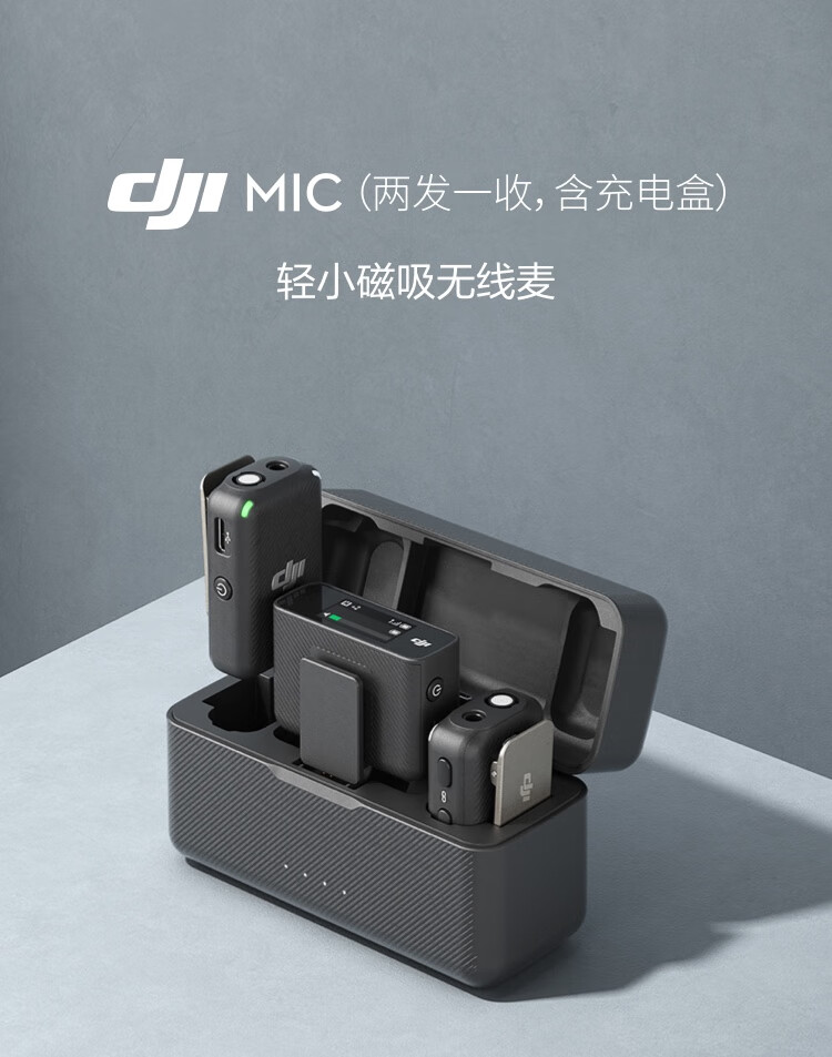 商品名称:大疆 DJI Mic 无线麦克风 一拖二无线领夹麦克风