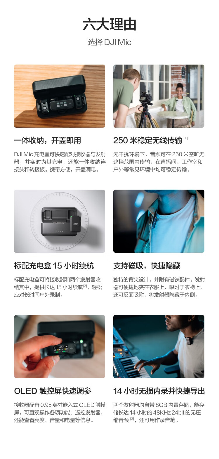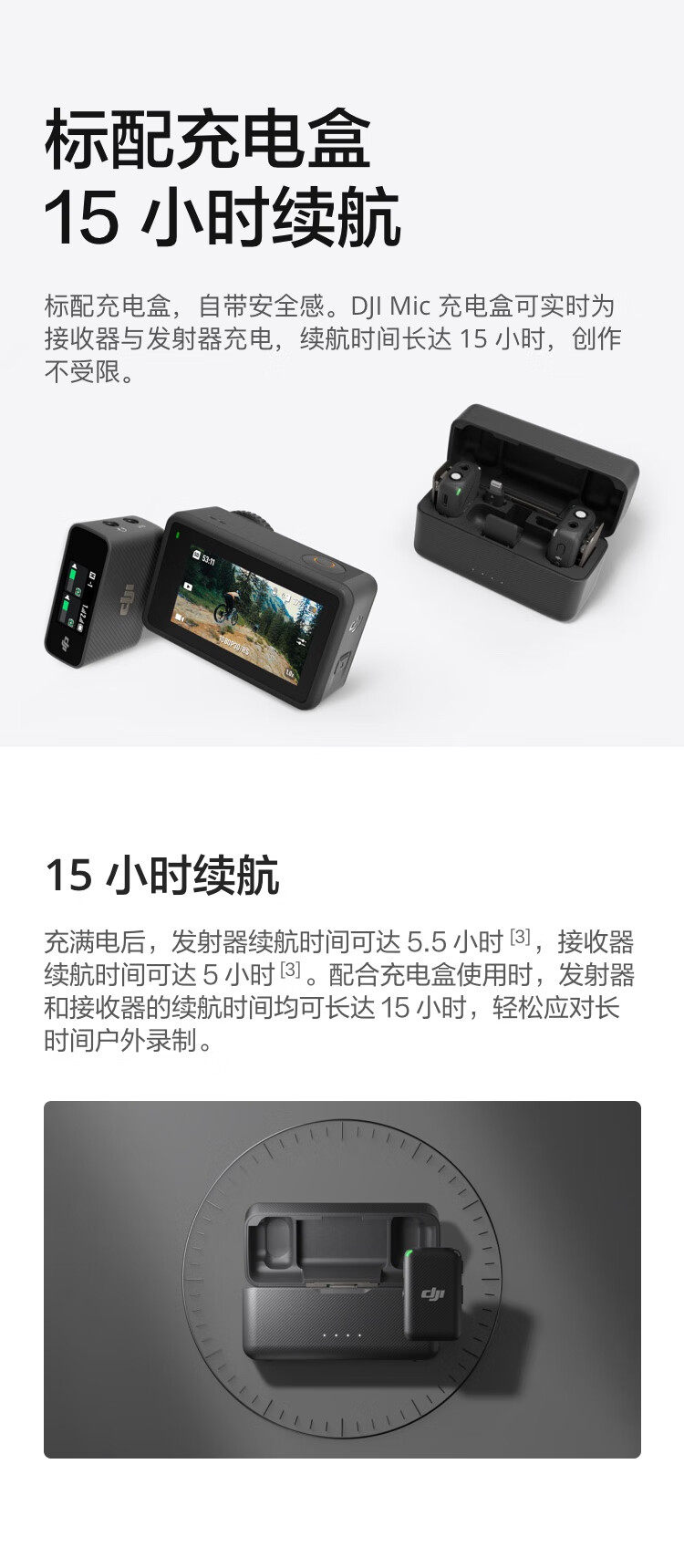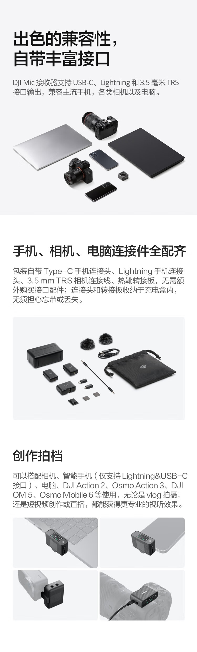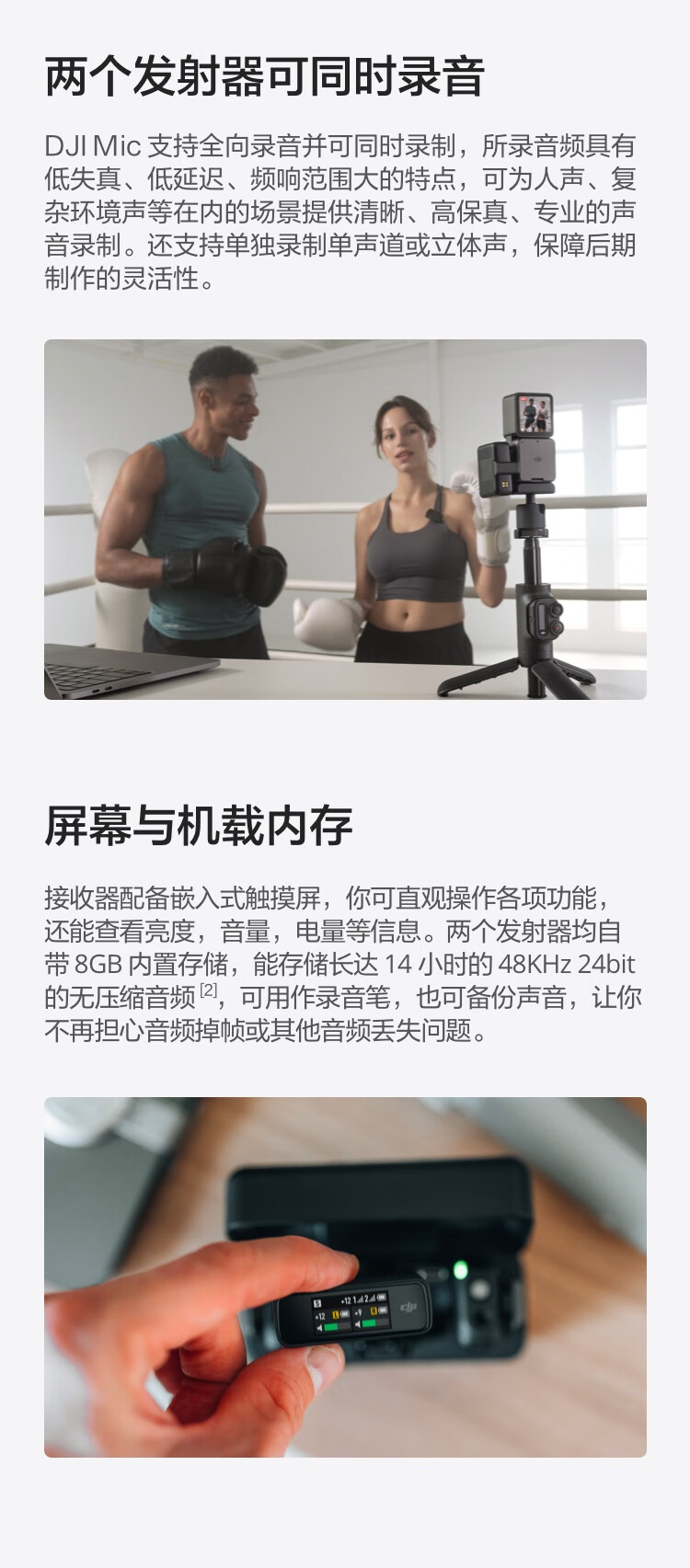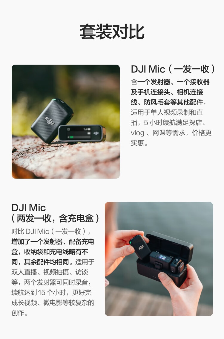 商品名称:大疆 DJI Mic 无线麦克风 一拖二无线领夹麦克风