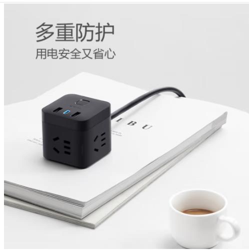 商品名称:公牛(BULL)30WPD苹果快充魔方插座/插线板/插排/接线板 Type-c口+USB口+3插孔 全长1.5米黑色 GNV-UU2303H