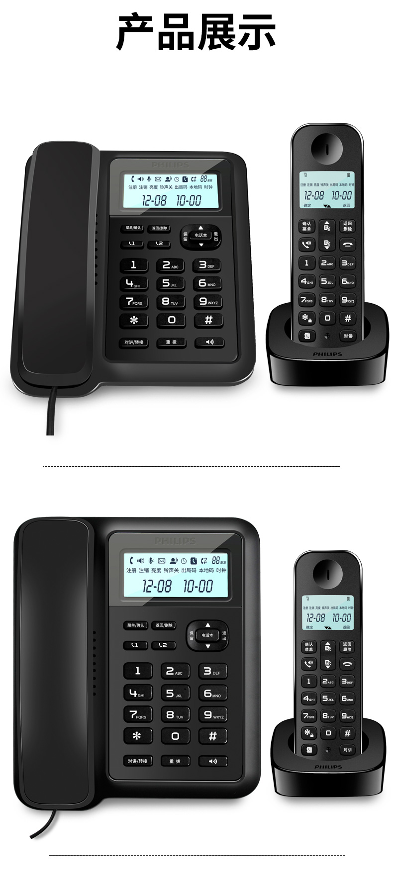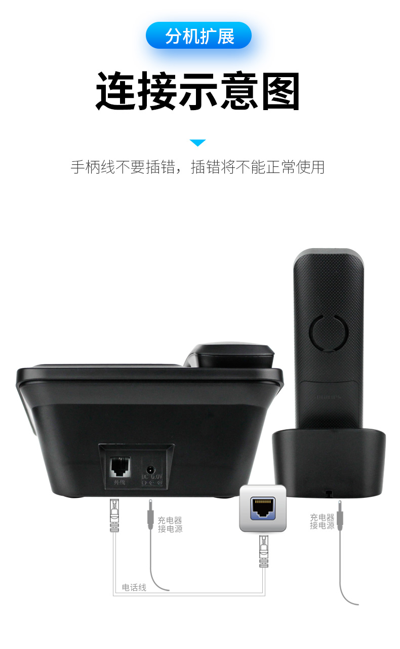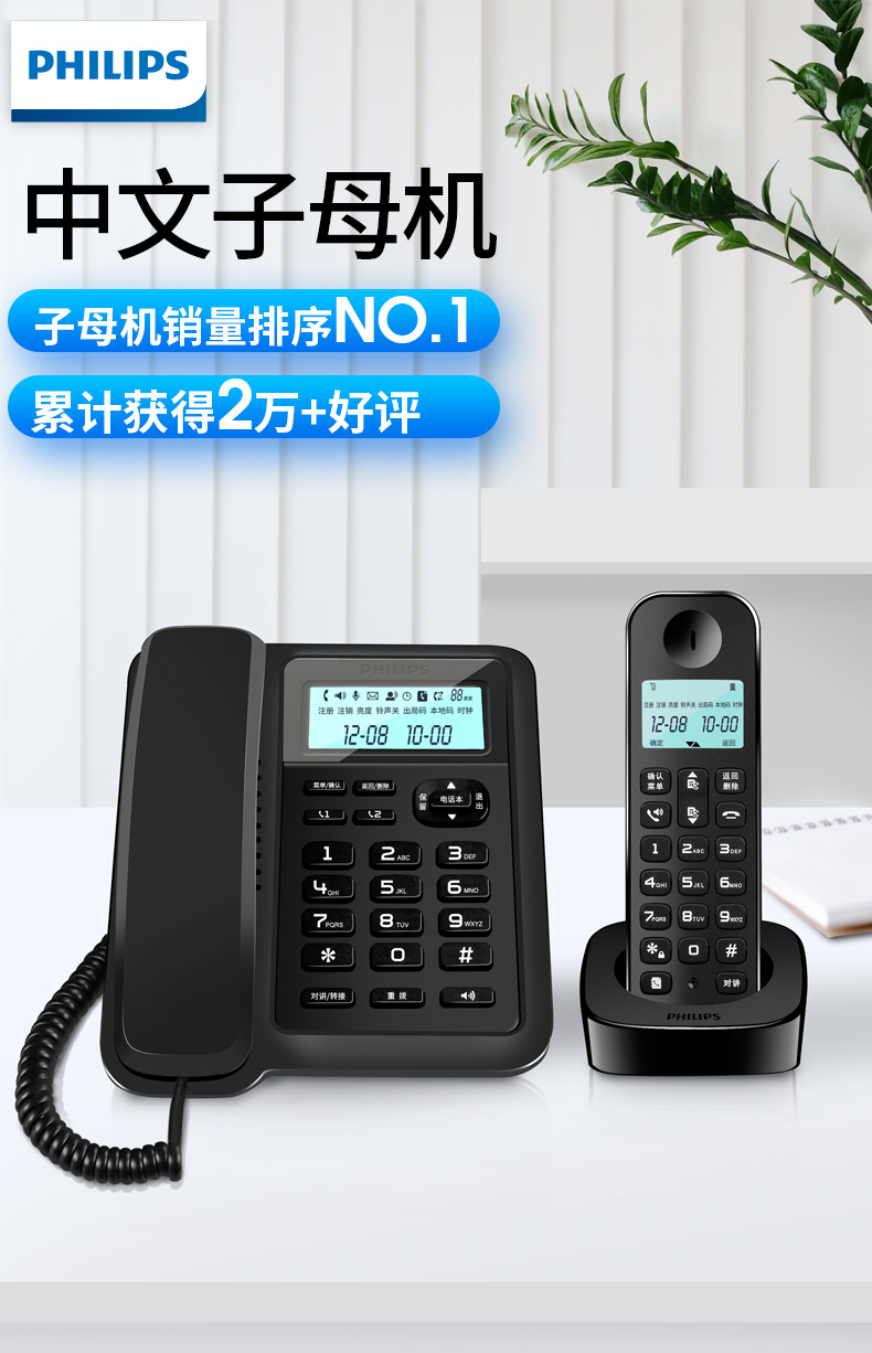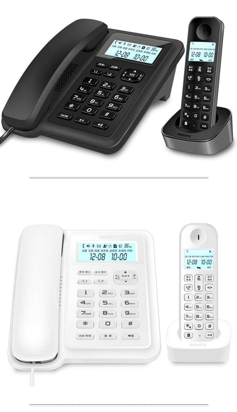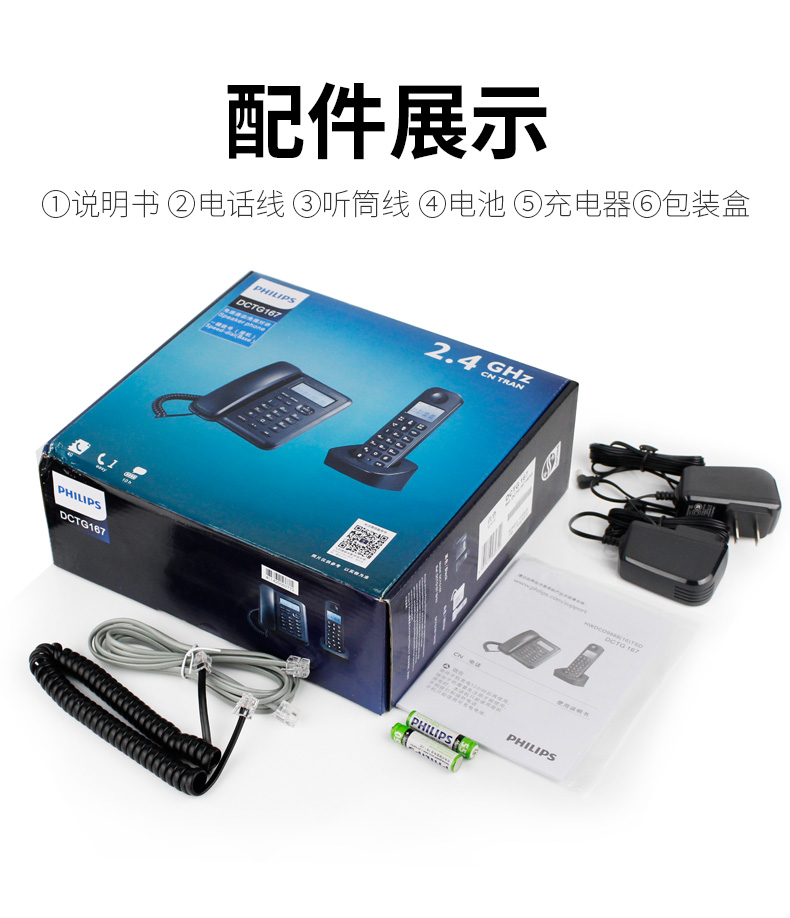 商品名称:飞利浦(PHILIPS)数字无绳电话机 无线座机 子母机 办公家用 信号覆盖广 屏幕白色背光 DCTG167一拖一黑色