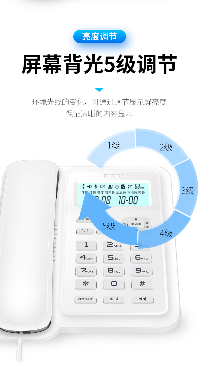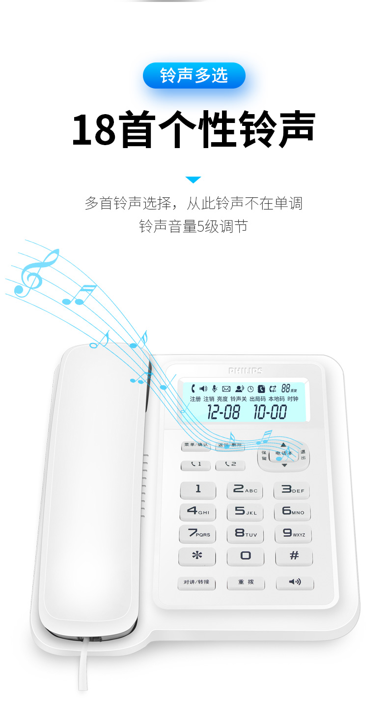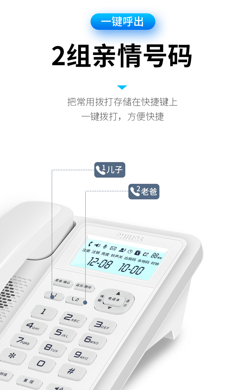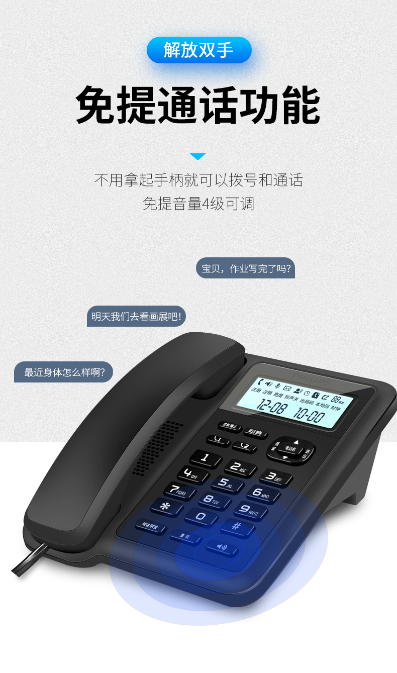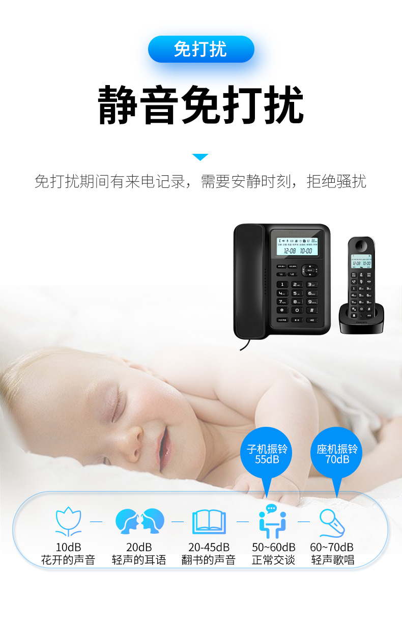 商品名称:飞利浦(PHILIPS)数字无绳电话机 无线座机 子母机 办公家用 信号覆盖广 屏幕白色背光 DCTG167一拖一黑色