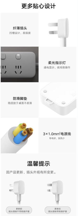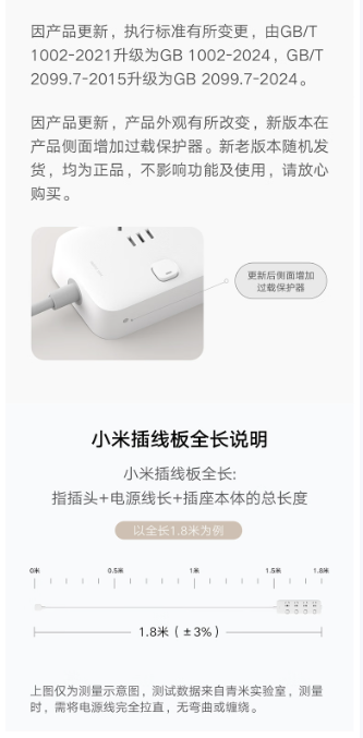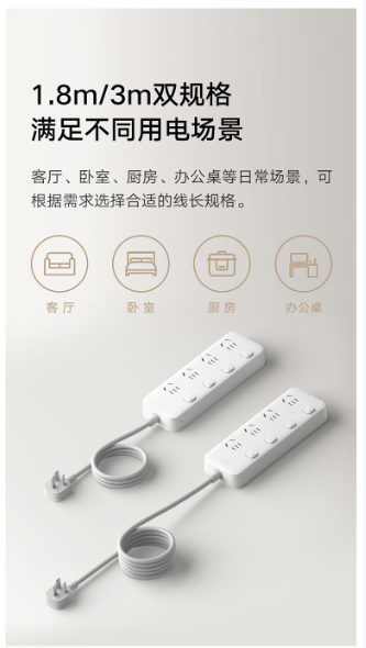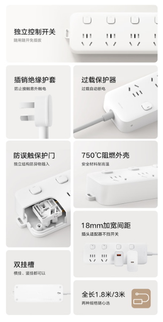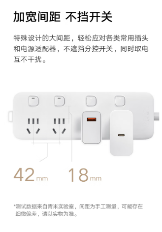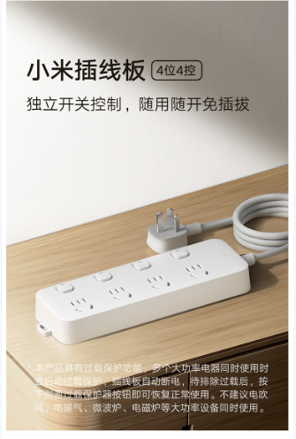商品名称:小米(MI)小米插线板(4位4控)分控插座全长1.8米 独立开关